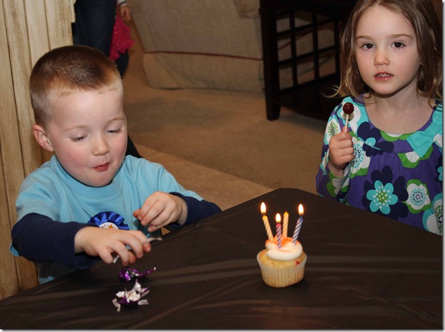 This was a crucial moment. He insisted that he was not four until he blew out the candles.